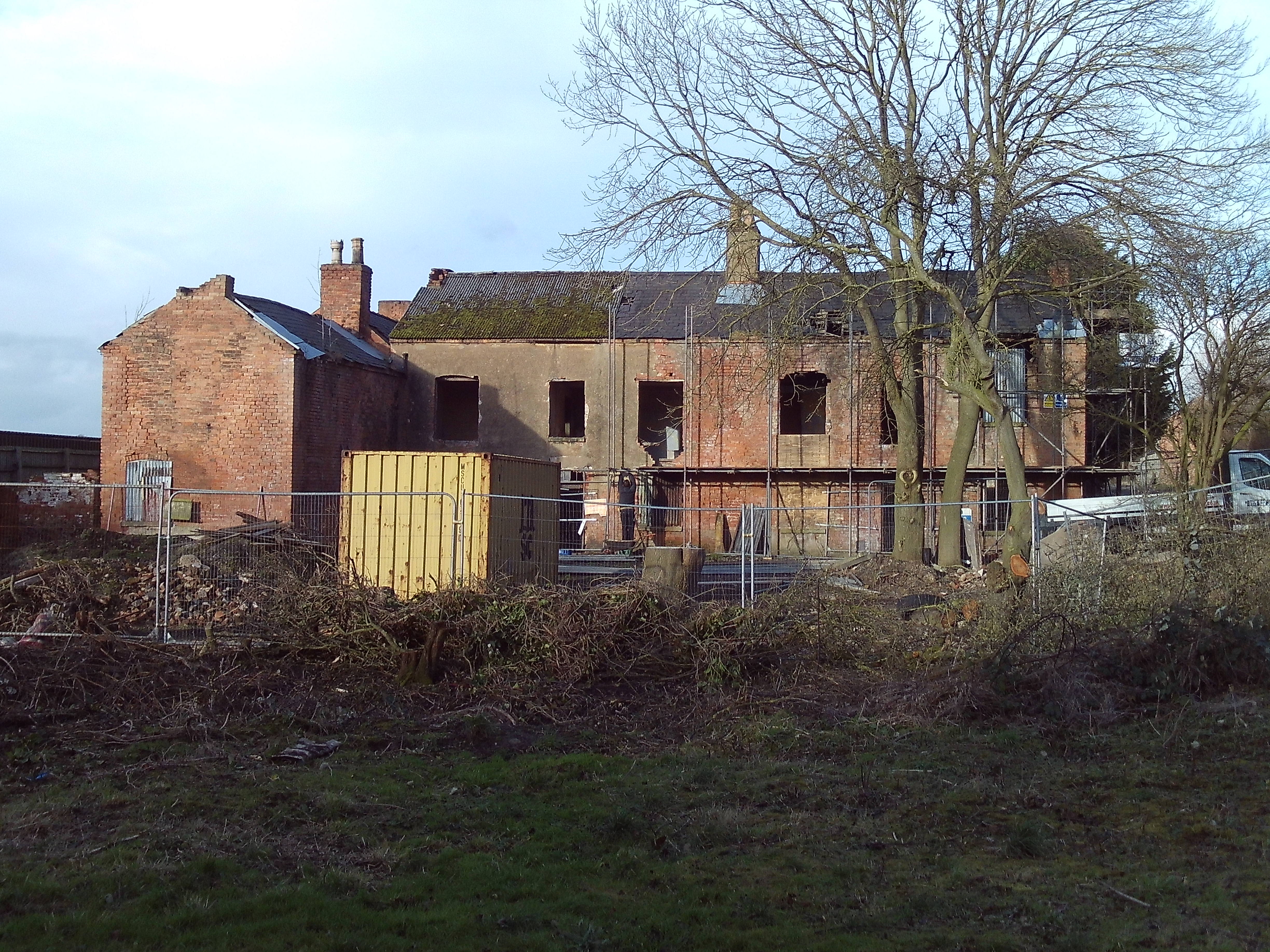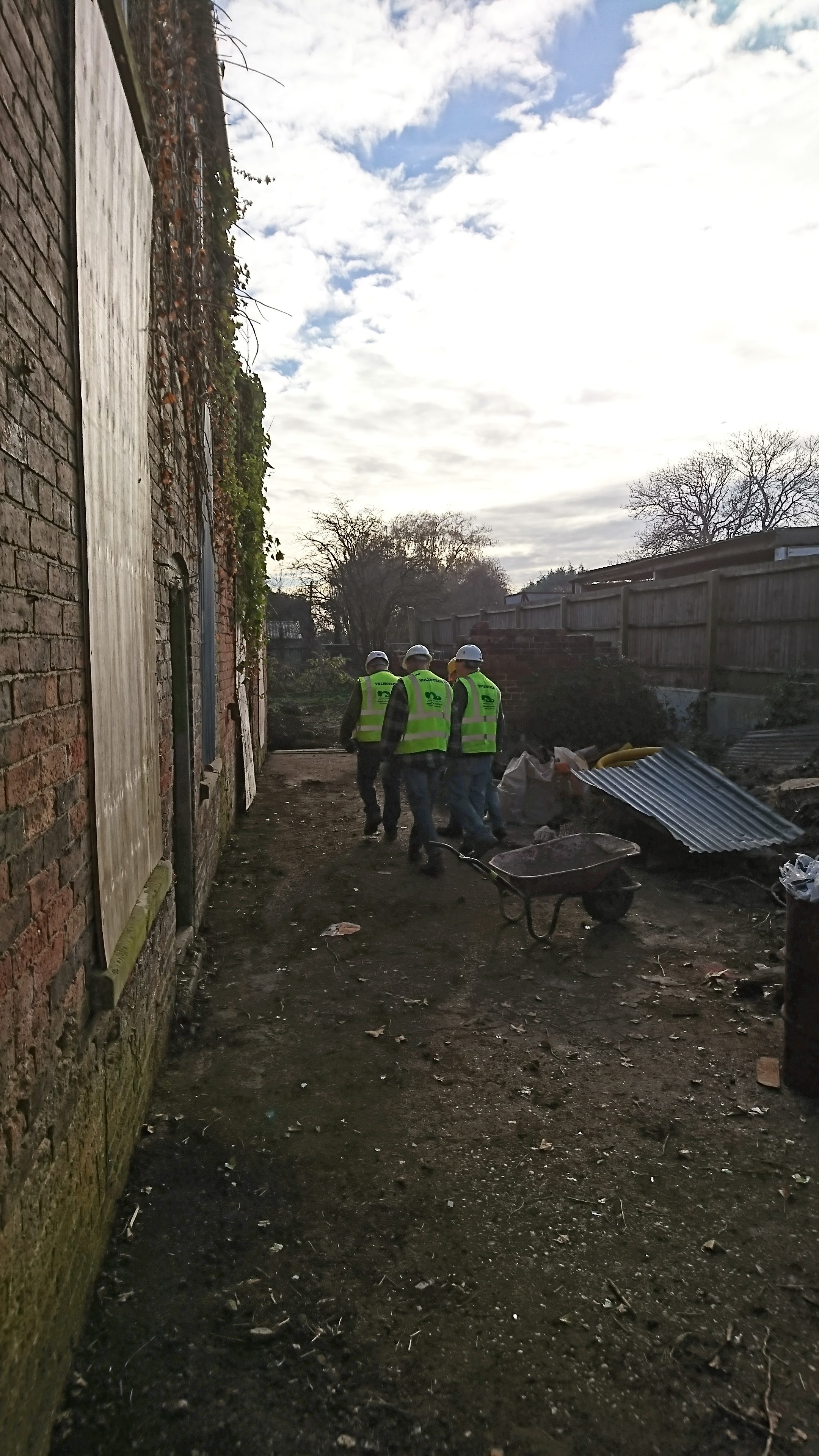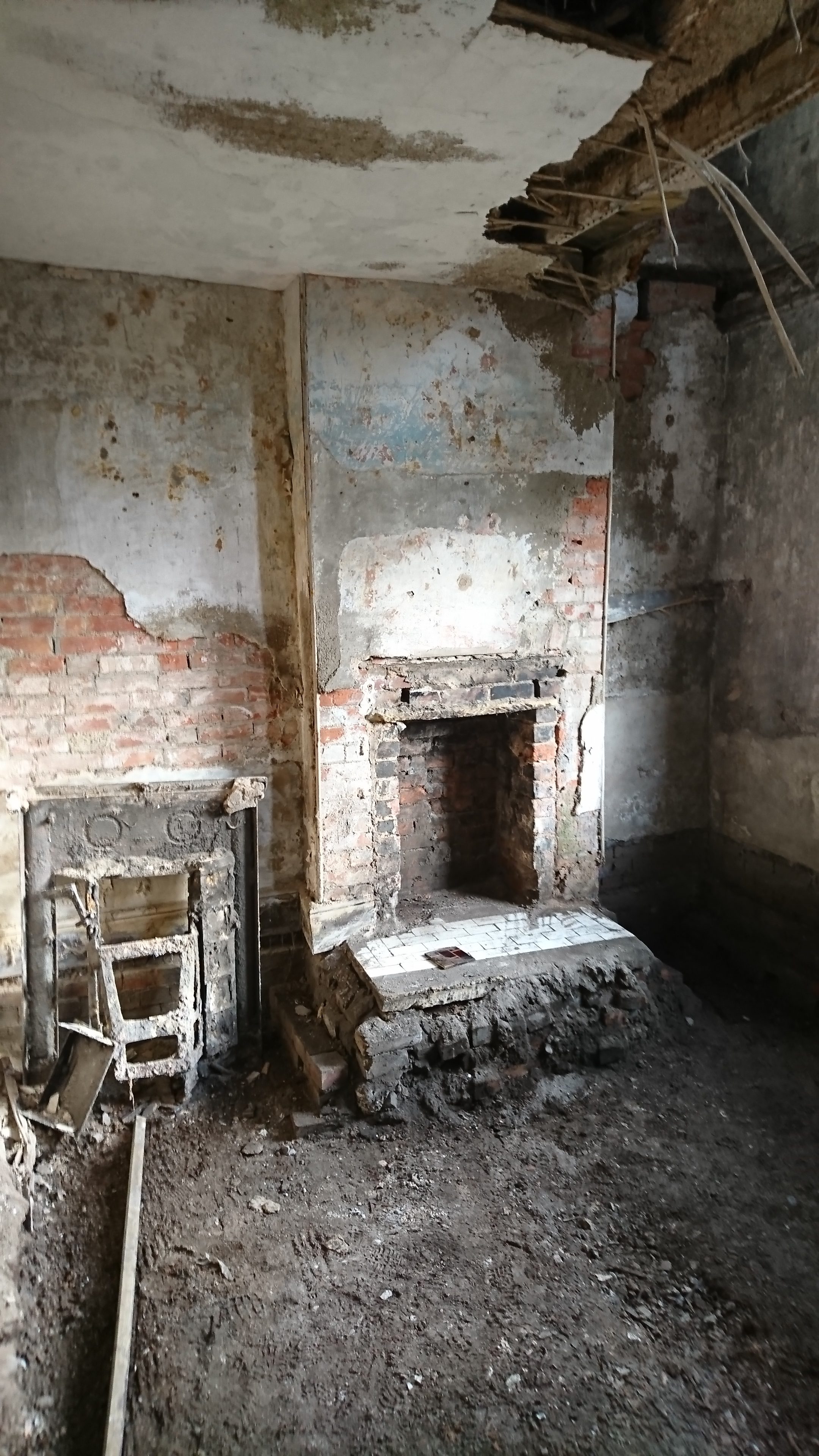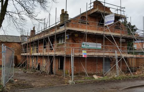 - Scaffolding was erected around the entire building, to enable a heritage-specialist builder to rebuild the main structure. All the work was done using reclaimed bricks from the main building and the dilapidated outbuildings. The majority of the internal walls were left untouched.
