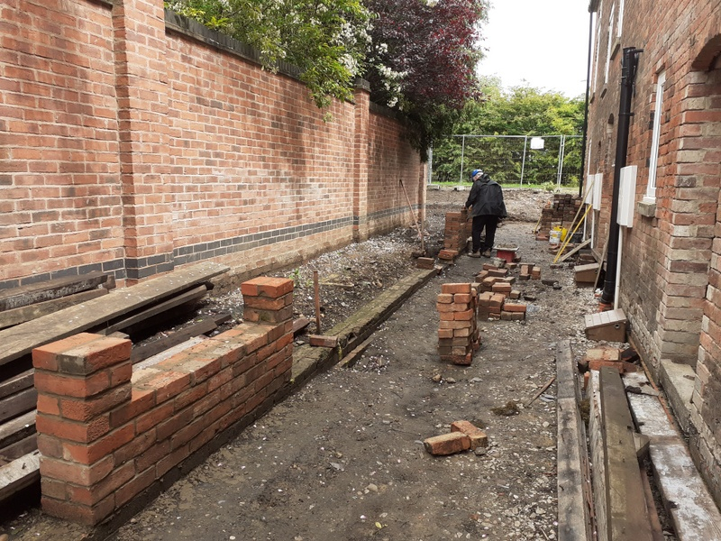 - Outside, the landscaping was completed with retaining walls built from railway sleepers. The outbuildings were rebuilt using reclaimed bricks left over from the main building. The car park was finished with permeable asphalt, which allows rainwater to soak away, and car park lighting installed.