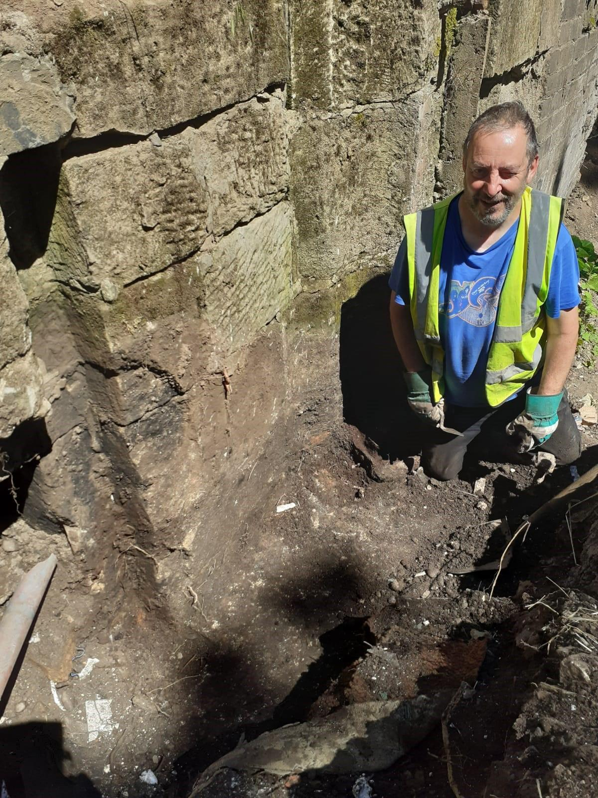 With the cost of sewer diversion estimated at £200k we have been working to reduce that number with a reasonably helpful Severn Trent water management. Key to that is understanding what state the south wall is in. Would it collapse if we dug a trench behind it? Is there room for a sewer or are there buttresses to negotiate?