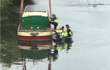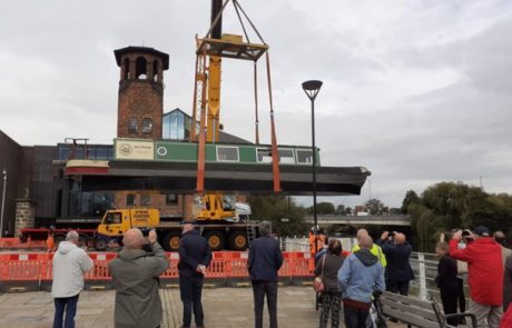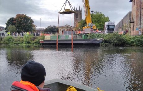 Most of concern was that the sonar survey of the river bottom carried out by the council showed a number of underwater obstructions that “should be deep enough” and a bar across the river just before the mooring jetty in Darley Abbey. These hadn’t shown up on the initial testing by Midland Canoe Club three years before, so we were able to use the small boat commissioned for the launch to carry out last minute depth testing on the day. Fortunately these showed the challenges were not as great as suggested and we were able to proceed with contingency plans a the ready. The testing at the Darley end showed that water depth was just about enough, even in the current low water state of the Derwent. However we are now looking at how to ensure that even lower waters don’t trap the boat on the jetty over the winter and will be undertaking work to mark the safe route through.