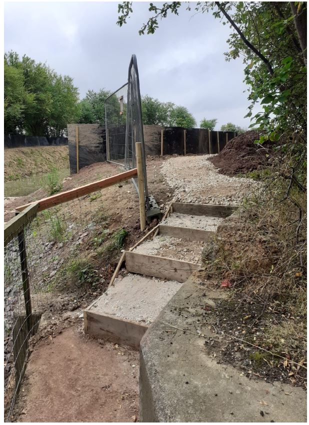 The team have also completed fencing and installed some steps down to the culvert walkway as shown. We’ve settled on work being delayed until next year as given the planting was delayed still further than expected we have had little choice. Now our challenge is to manage the additional funding costs caused by the original damage and the consequent delay. We are in the process of claiming extra costs from Network Rail, but this is likely to be a long process and early indications suggest this may leave a shortfall. We are already looking at how to deal with this and complete the works promptly and cost effectively.