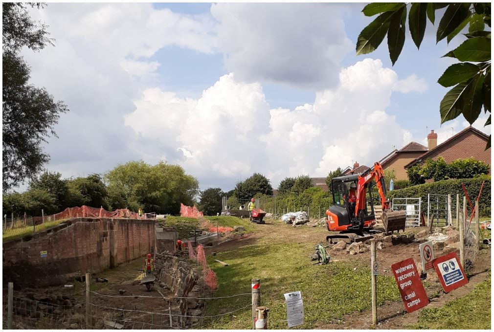 As planned, Waterways Recovery Group attended in the first week of August. Dave Savidge took control and with a reduced WRG team delivered the final reconstruction of the lock chamber and wing walls and started to uncover some strange brick/blockwork around the bye wash. Dave is now trying to work out the what was found in readiness for future work establishing the aqueduct across the Ock Brook. We should recognise that Dave has achieved the first WRG camp since lockdown and it was both Covid uneventful and so enjoyable the team are already asking what they can do next year. Thanks Dave!