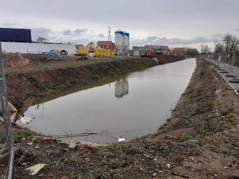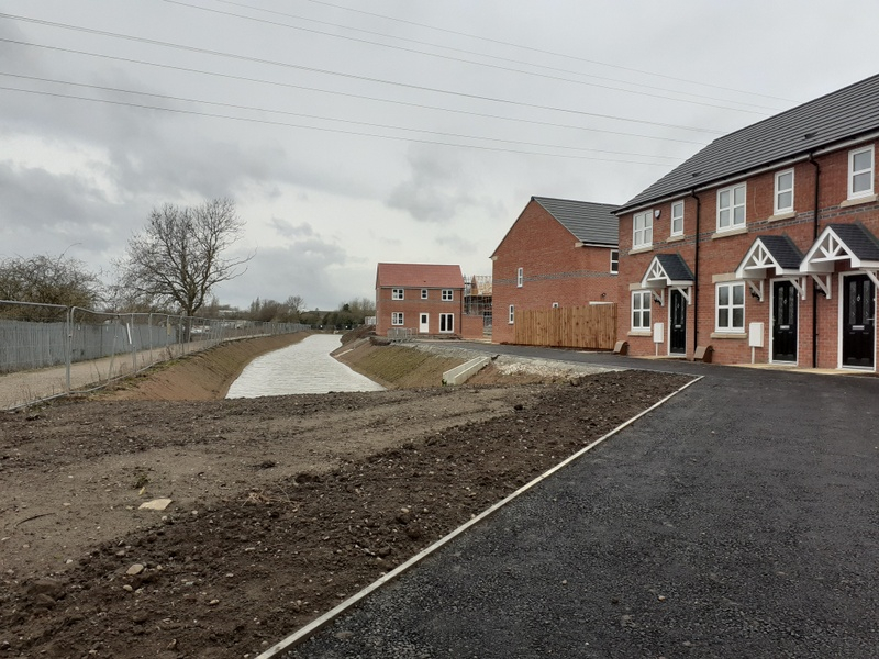 In Spondon, a developer (Wheeldon Brothers) has begun to build more than a hundred houses on a large plot adjacent to the canal. By building a section of canal, the developer has reduced the required cost of building a balancing tank to deal with rainwater flooding. Likewise by using the canal land as part of the “leisure” provision they can sell properties close to the canal at a premium, thereby generating more profit. Thus they have provided the Trust with a “free” section of canal.